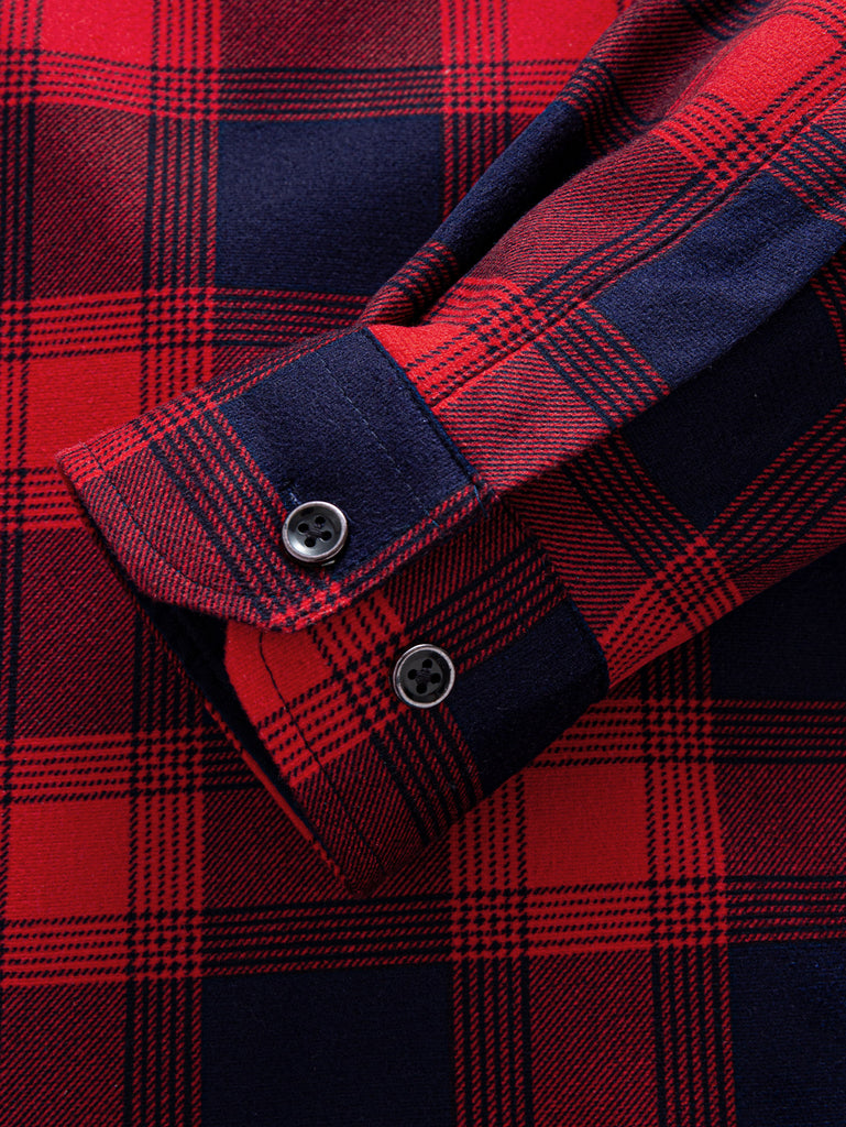 フランネルフリース裏地チェック柄ボタンダウンシャツ